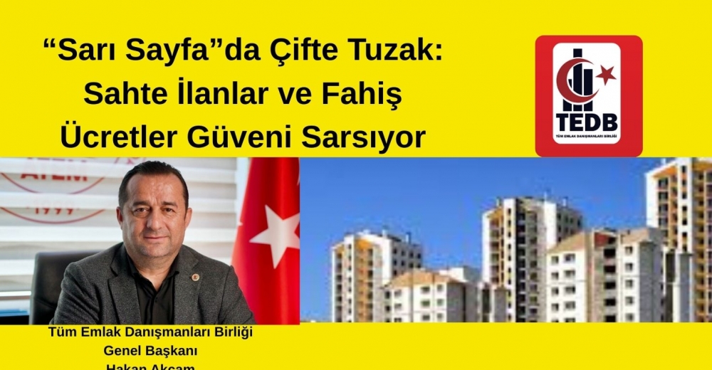 Gayrimenkul sektöründe son dönemde artan sahte ilanlar ve ilan platformlarının uyguladığı yüksek ücret politikası hem vatandaşların hem de emlak danışmanlarının tepkisini çekiyor. Tüm Emlak Danışmanları Birliği Başkanı Hakan Akçam, “Sarı sayfa artık sadece dolandırıcılık vakalarının değil, ekonomik sömürünün de adresi haline geldi” diyerek sektöre yönelik sert uyarılarda bulundu.