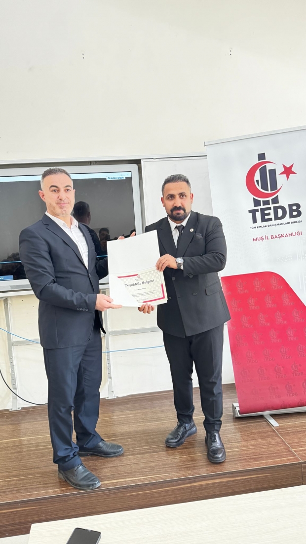 Tüm Emlak Danışmanları Birliği (TEDB) Muş İl Başkanlığı olarak, Muş Alparslan Üniversitesi’nde “Emlak Sektörünün Geleceği” başlıklı bir seminer düzenledik.